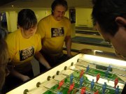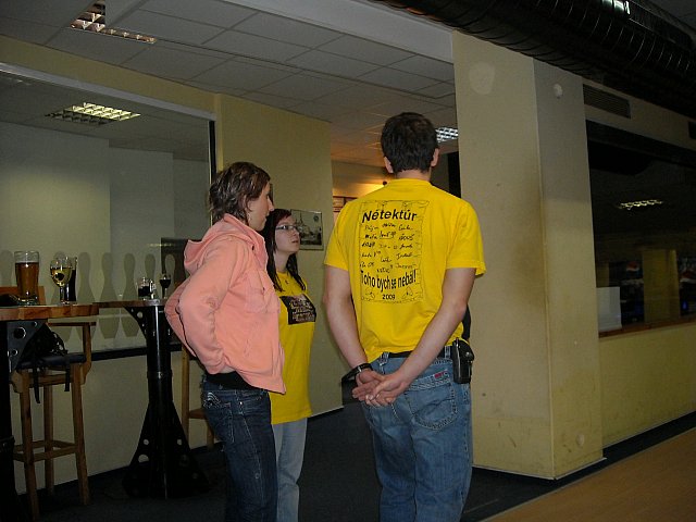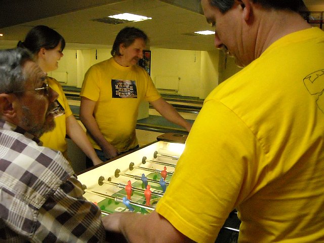 Následuje tisková konference v nedaleké herně a pizzerii. I zde pokračovala dobrá zábava. Pool, stolní hokej, dobrá pizza, pivo, "pinacoláda" i minerálka.