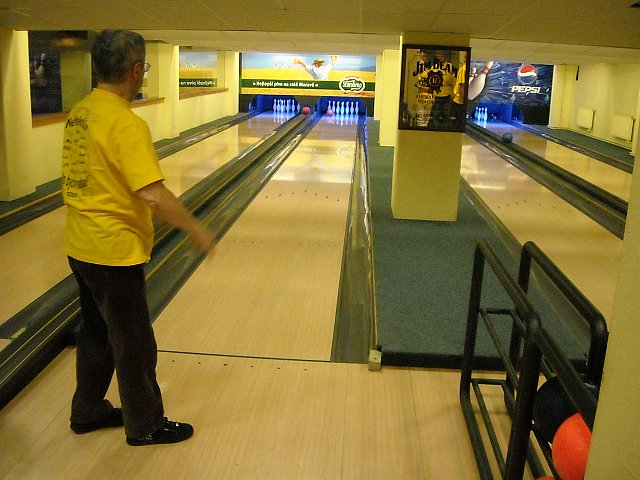 S chutí se pouštíme do hry. Pravda, první hra někomu činí trošku potíže. Jiné prostředí, dráhy a koule. Záhy se ukazuje, že těm, co "to" hrají údajně poprvé, to nejde vůbec špatně.